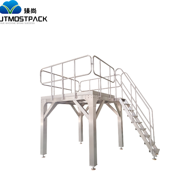 4. Опорная ножка принимает квадратную трубу 150*150*3, квадратную трубу основной рамы 120*120*3, с противоскользящим столом толщиной 3 мм и защитным ограждением 32*2.